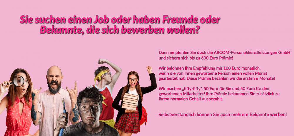 Arcom bietet Bewerbern aus vielen Berufen interessante Perspektiven ! Nicht nur ausgebildetes Fachpersonal, sondern auch Hilfskräfte finden bei uns gute Voraussetzungen zur beruflichen Qualifizierung und Orientierung.
